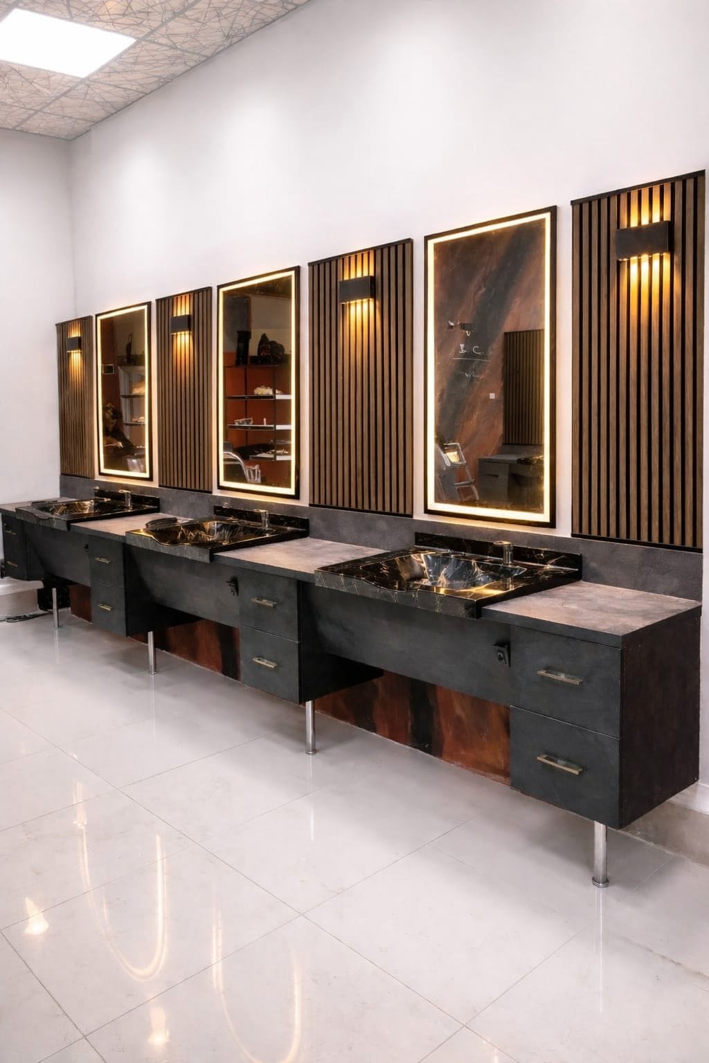 BERBER TEZGAH 194K dahil tezgah çözümlerinde çekmece, ayna, depolama ve priz yerleşimi salon planınıza göre özelleştirilebilir. Ölçüleri netleştirmek için yerleşim çizimi veya fotoğraf paylaşmanız yeterlidir.