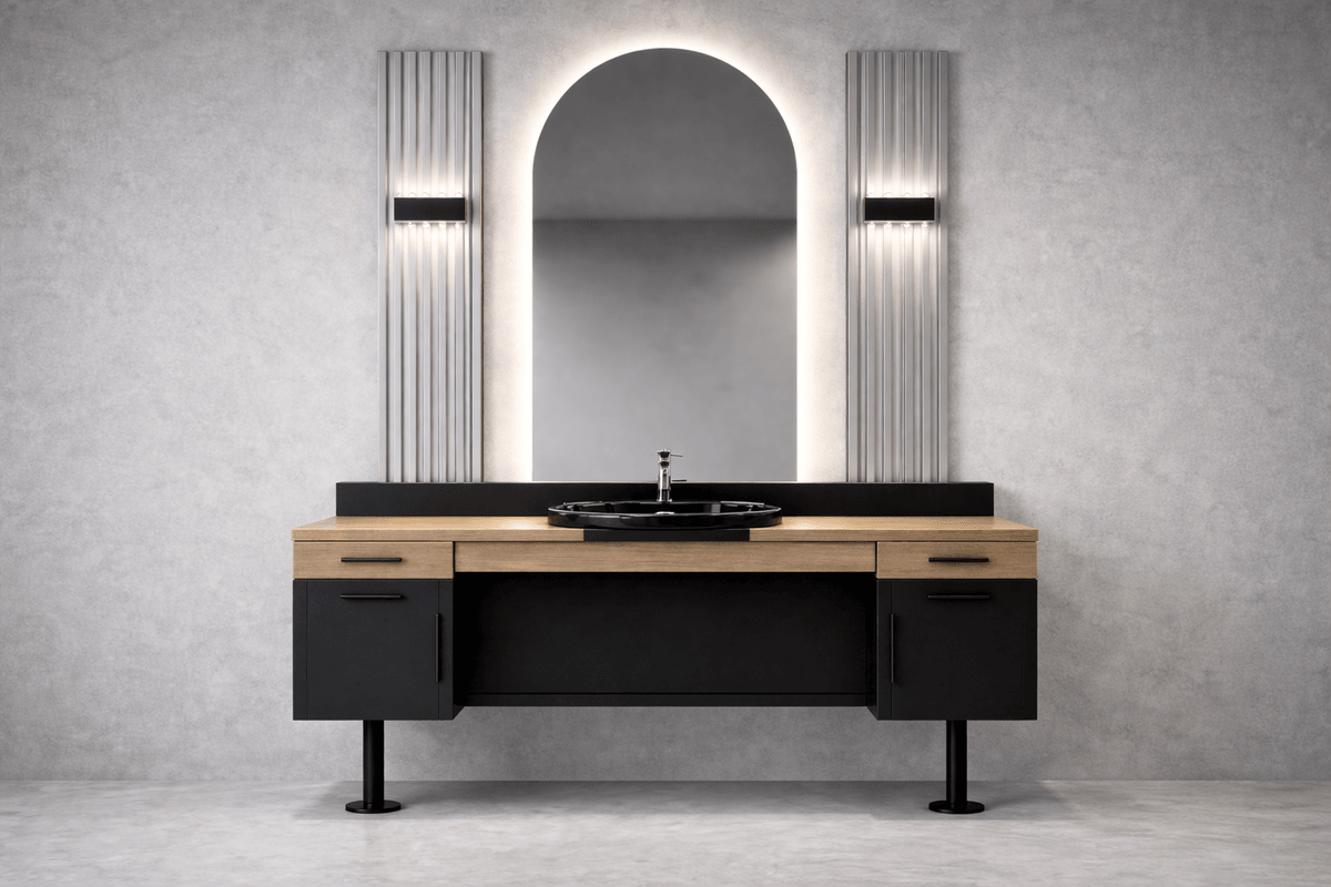 BERBER TEZGAH 196 dahil tezgah çözümlerinde çekmece, ayna, depolama ve priz yerleşimi salon planınıza göre özelleştirilebilir. Ölçüleri netleştirmek için yerleşim çizimi veya fotoğraf paylaşmanız yeterlidir.