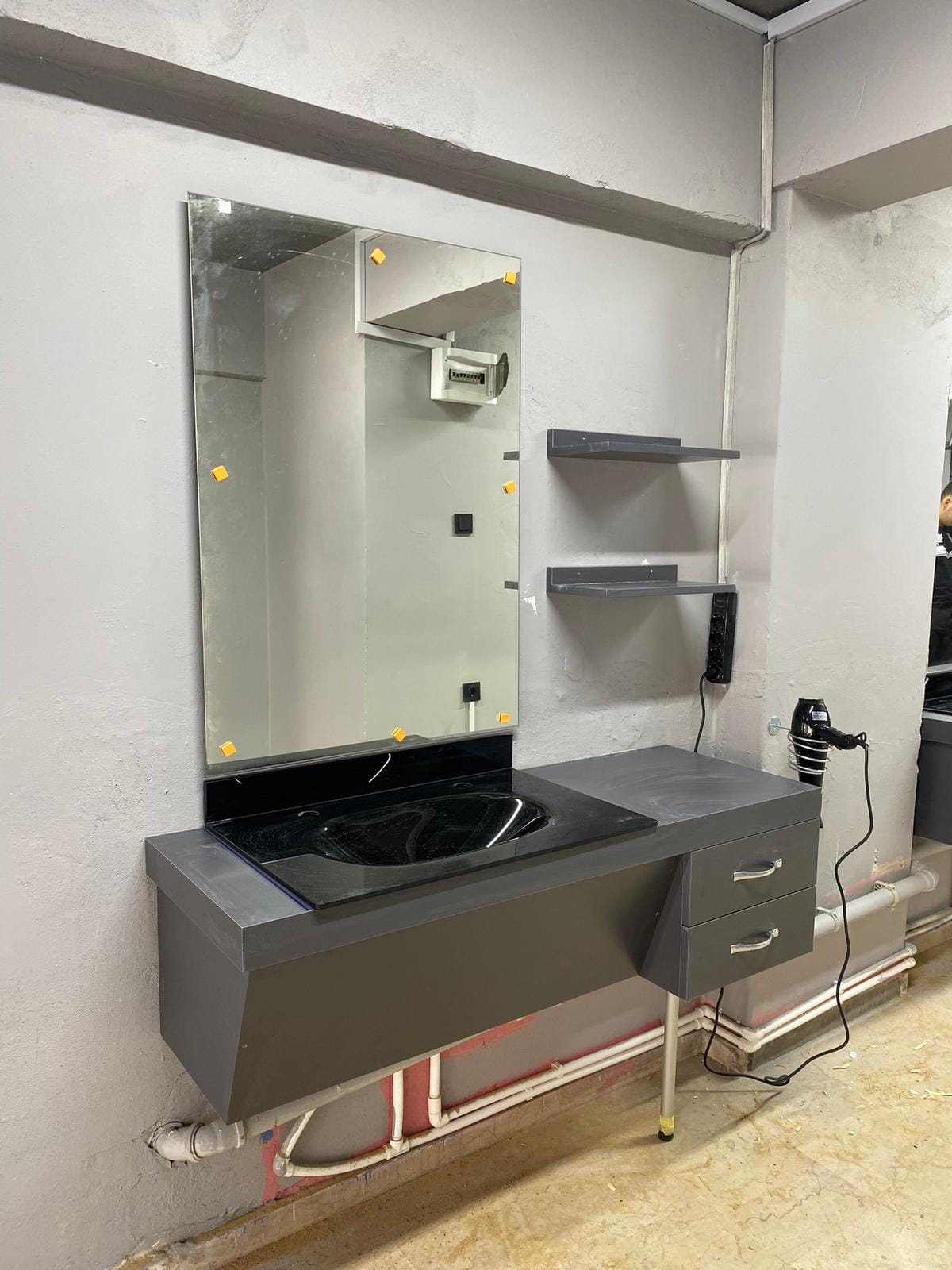 BERBER TEZGAH 277 dahil tezgah çözümlerinde çekmece, ayna, depolama ve priz yerleşimi salon planınıza göre özelleştirilebilir. Ölçüleri netleştirmek için yerleşim çizimi veya fotoğraf paylaşmanız yeterlidir.