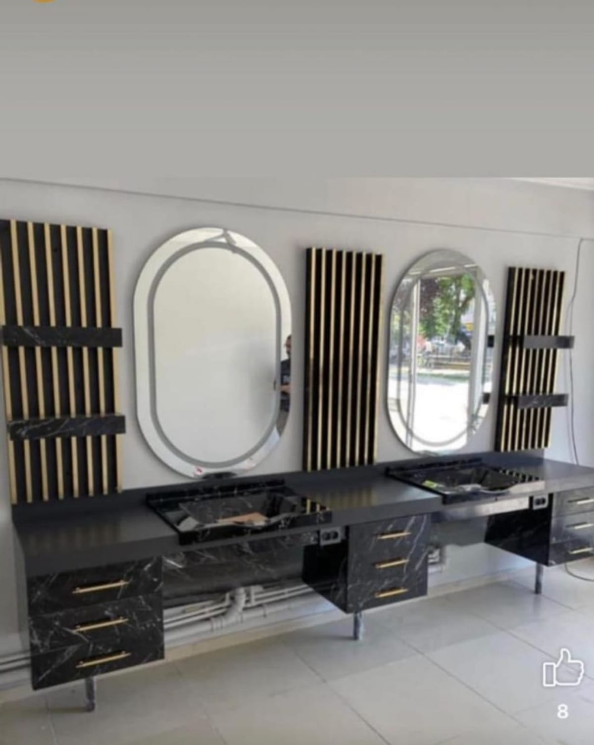 BERBER TEZGAH 284 dahil tezgah çözümlerinde çekmece, ayna, depolama ve priz yerleşimi salon planınıza göre özelleştirilebilir. Ölçüleri netleştirmek için yerleşim çizimi veya fotoğraf paylaşmanız yeterlidir.